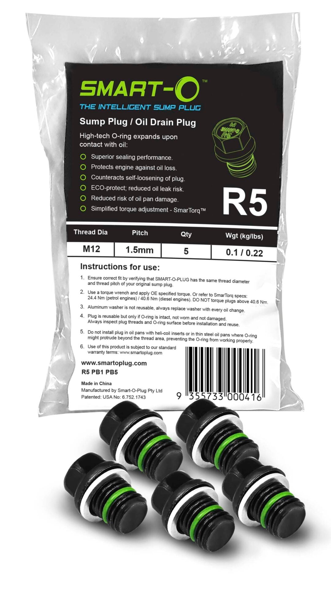 5-packs of SMART-O oil pan drain plugs to suit your vehicle. To...